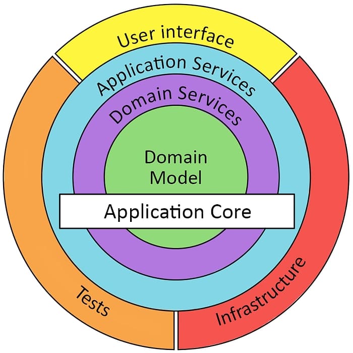 - Domain model: the very center of the Model, this layer can have dependencies only on itself. It represents the Entities of the Business and the Behaviour of these Entities.