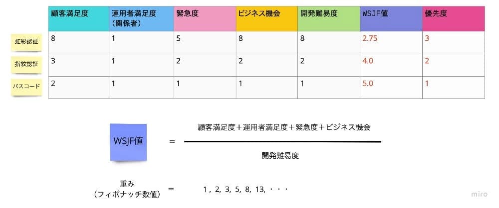 そして、WSJF(Weighted Shortest Job First)の手法をもとに、優先順位を決めます。この手法により、多角的な視点で価値を判断することができます。