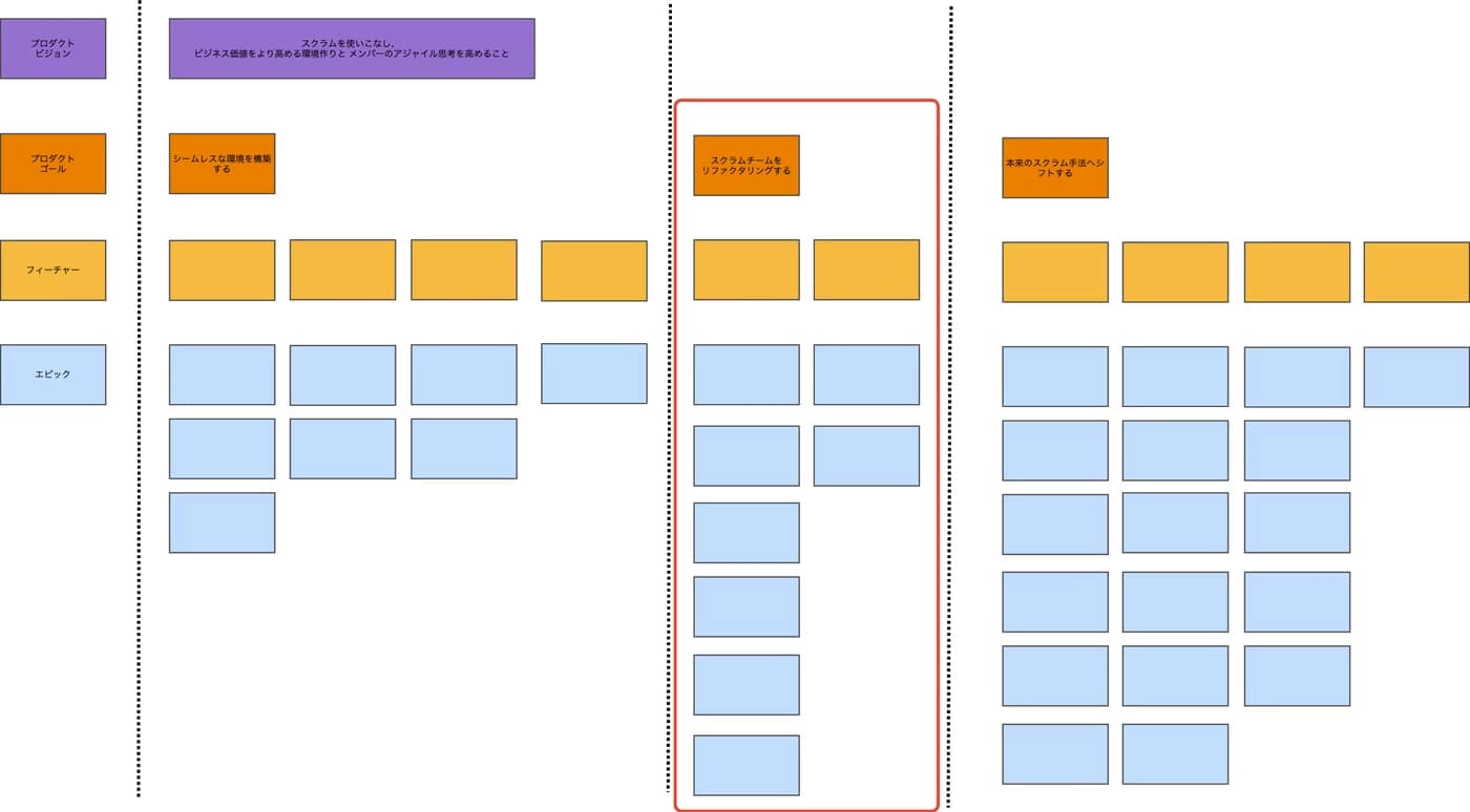 - そこで、Scrum@Scaleのフレームワークを使い、スクラムチームを2つに分離しました